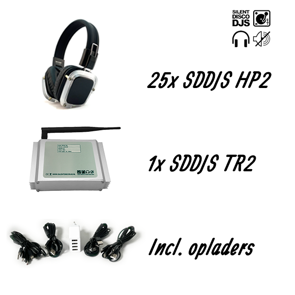 SDDJS 25HP2 Complete set met 25x HP2 Silent Disco hoofdtelefoon